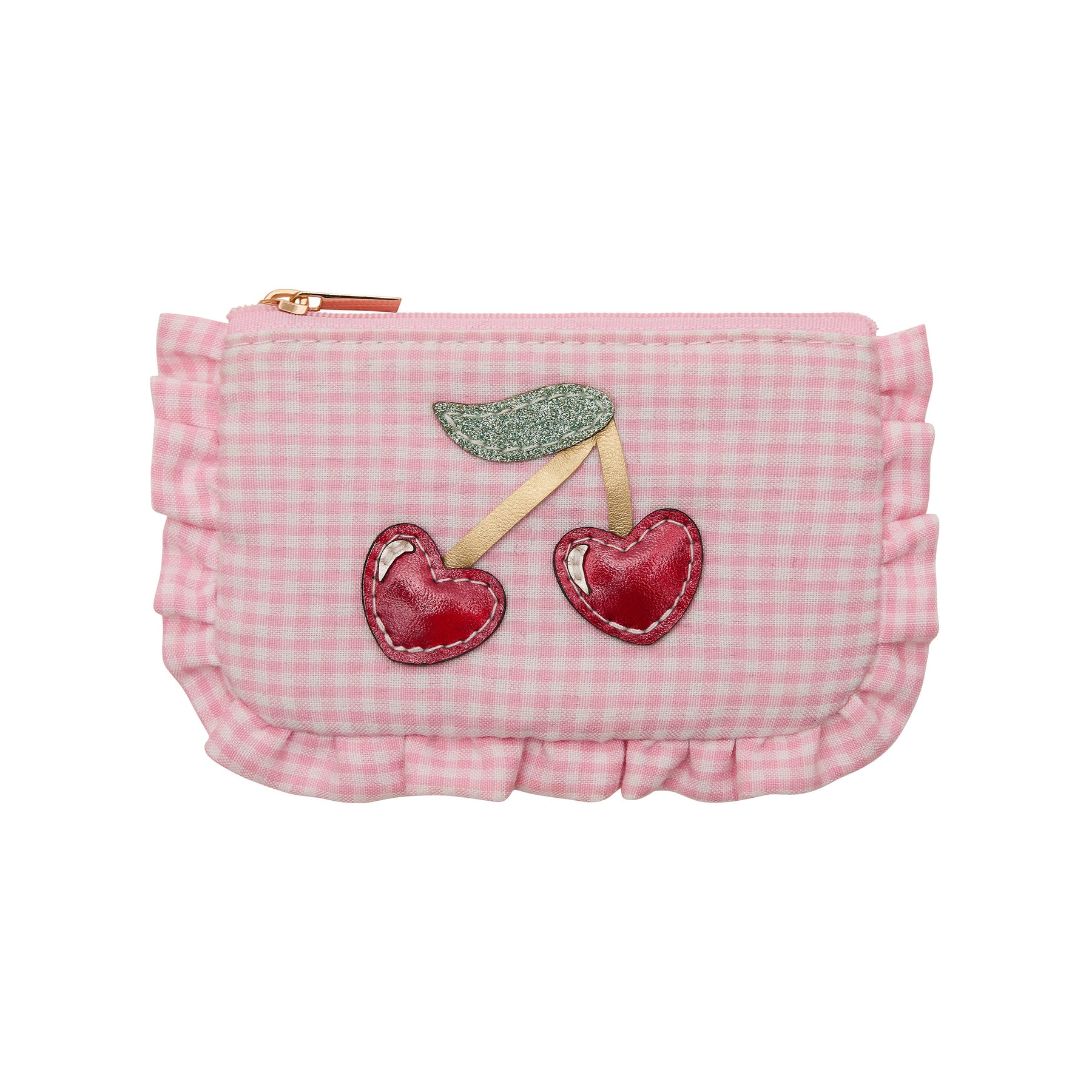 Mimi and Lula's charming new Cherry purse is crafted from pretty pink gingham featuring a ruffled edge plus a zip top to keep all their little goodies or pennies safe! A perfect gift idea!
