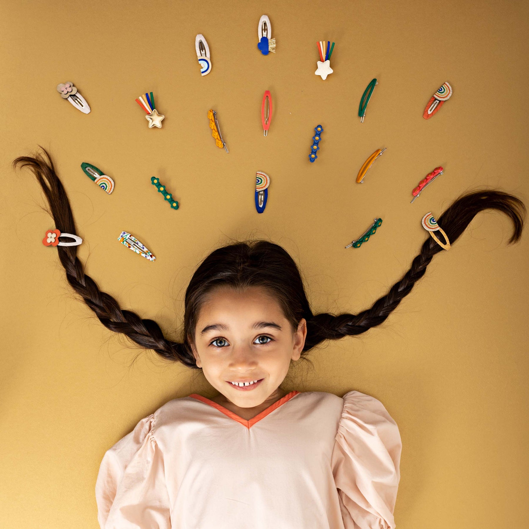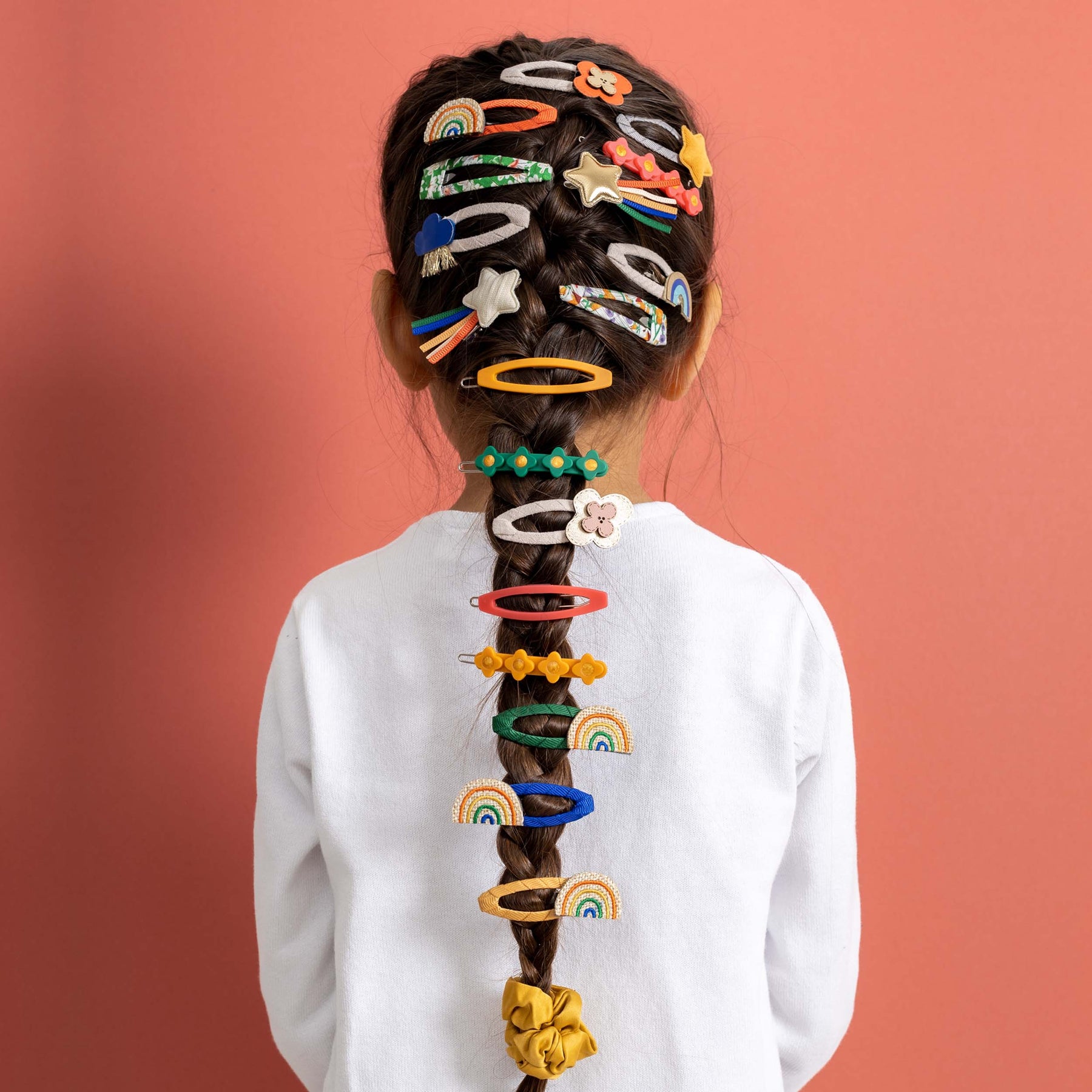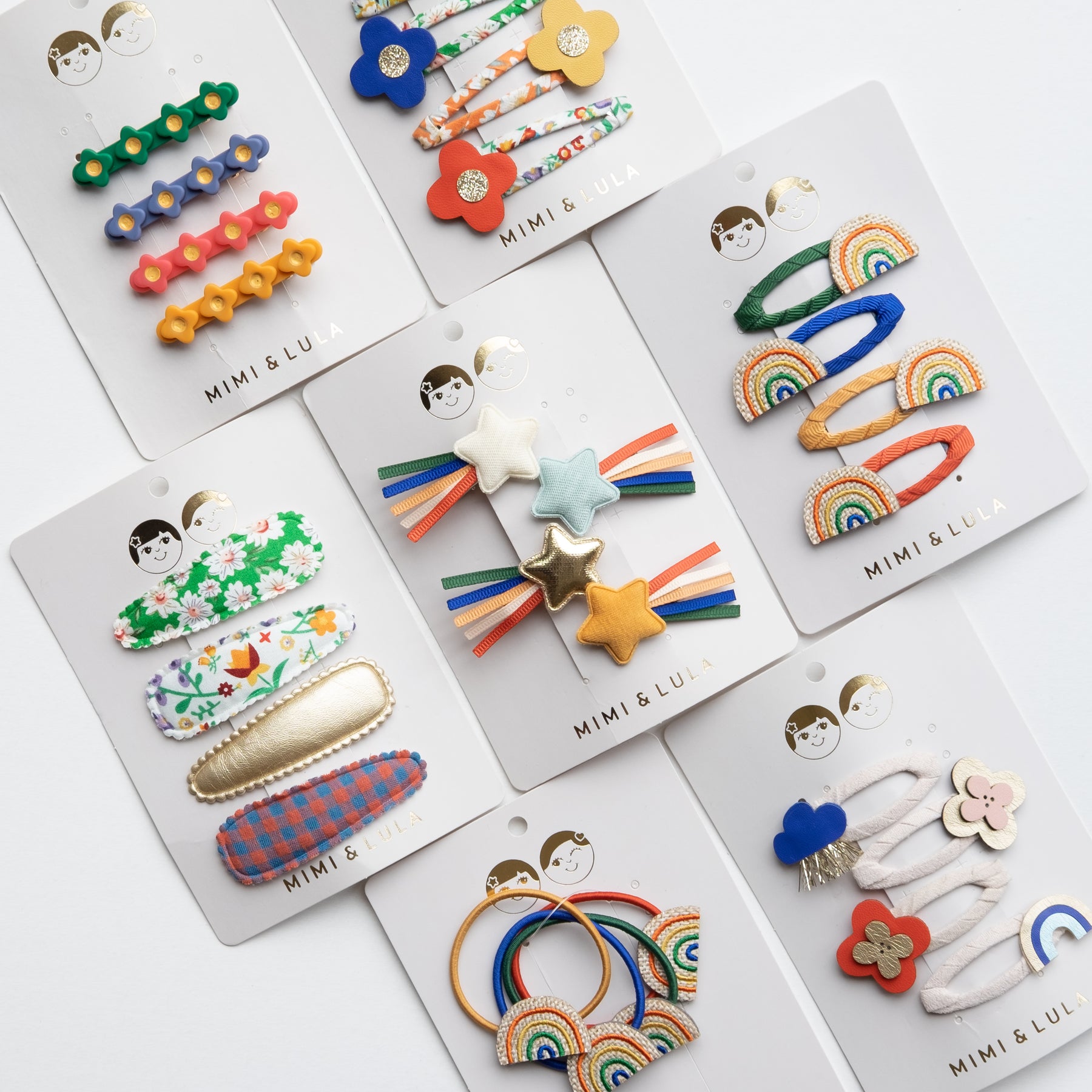 Everywhere you go, always take the weather with you! This gorgeous little pack of weather-inspired clic clacs make the perfect clips for summer hair! Soft and neutral suedette fabric wrapped clic clacs perfectly topped with either a raincloud, flower or rainbow in bright and colourful leatherette fabrics. These adorable clips are super strong meaning they will stay in place all day and are perfect for adding a fresh pop of colour to any outfit!
