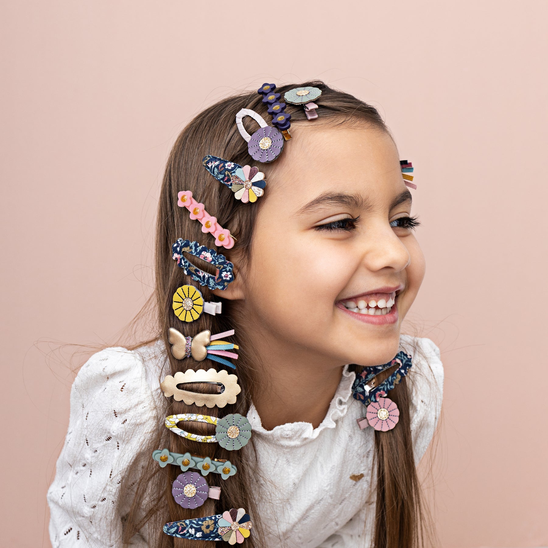 These clic-clacs are as fresh as a daisy! In a beautiful wintry colour palette combined with gorgeous floral prints, they pair perfectly with our daisy ponies and are great for adding some winter colour to any hairstyle.