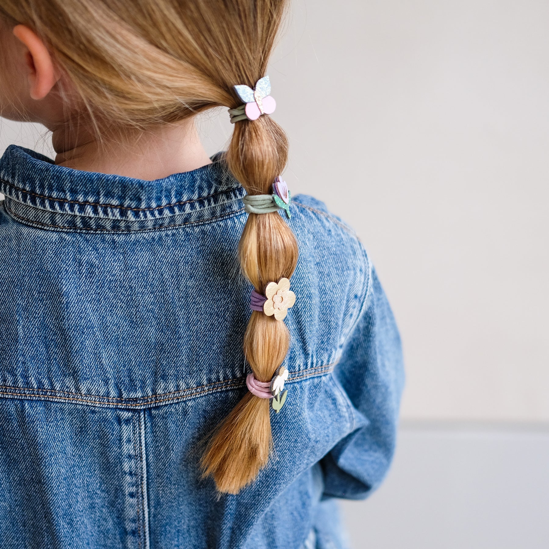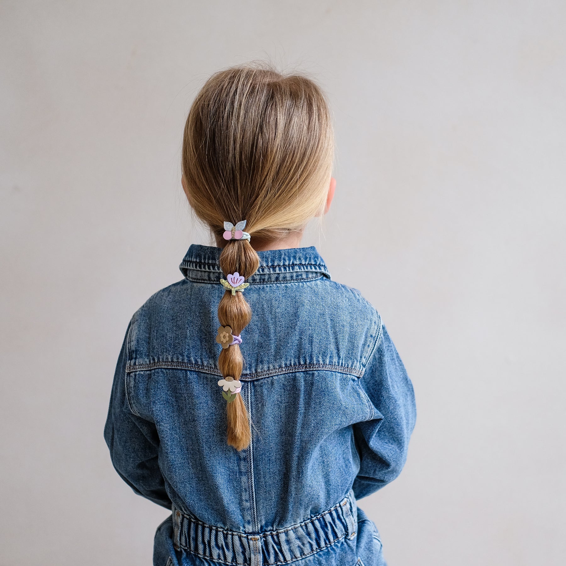 This lovely little set of ponies feature dainty flowers and tiny butterflies in gentle pastel tones — perfect for adding a whisper of spring to any hairstyle.