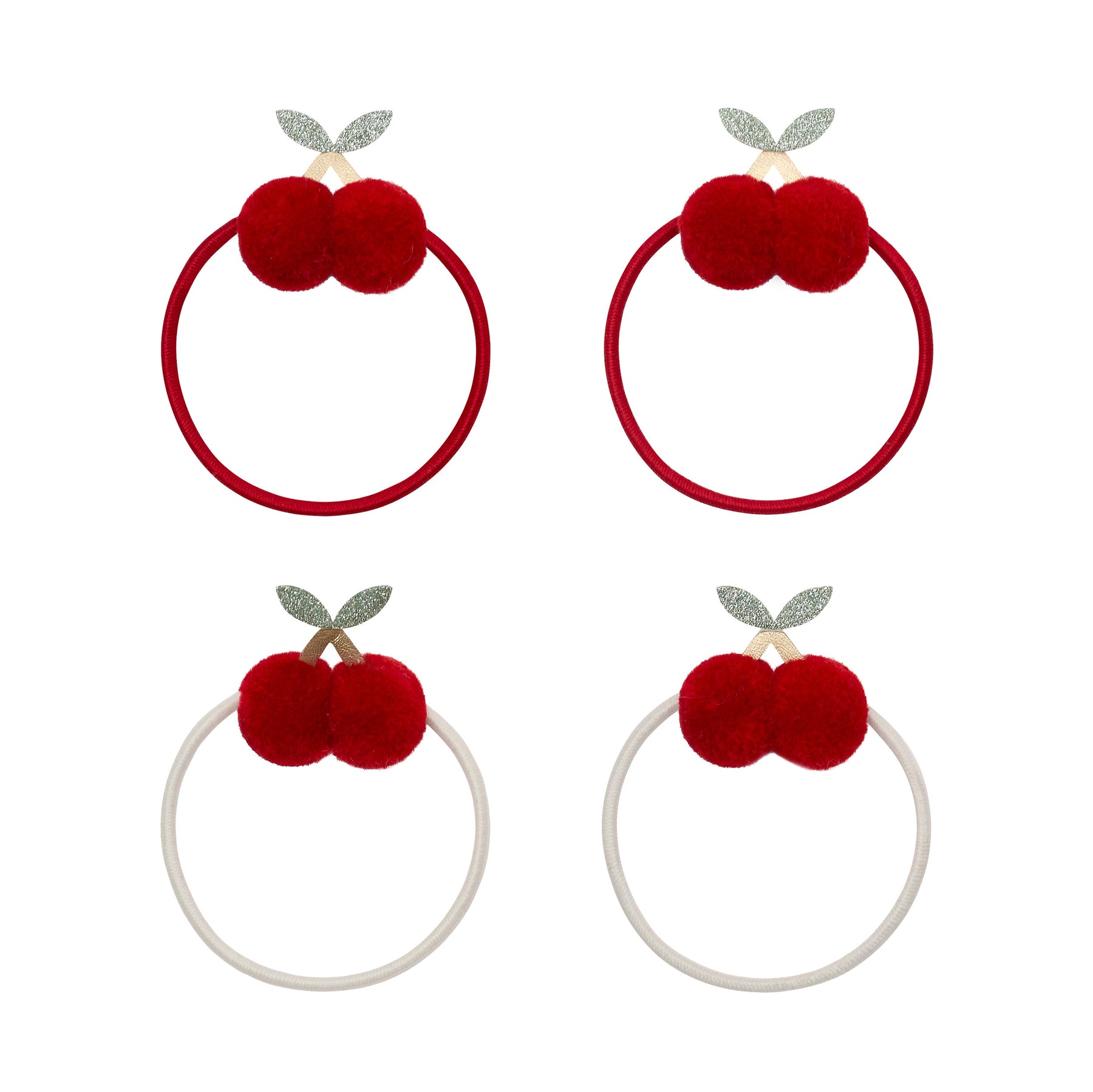 Add a fun and fruity twist to their hair with these adorable cherry ponies, each finished with a pair of super soft, bright red pom pom cherries for a bright pop of cheerful charm!